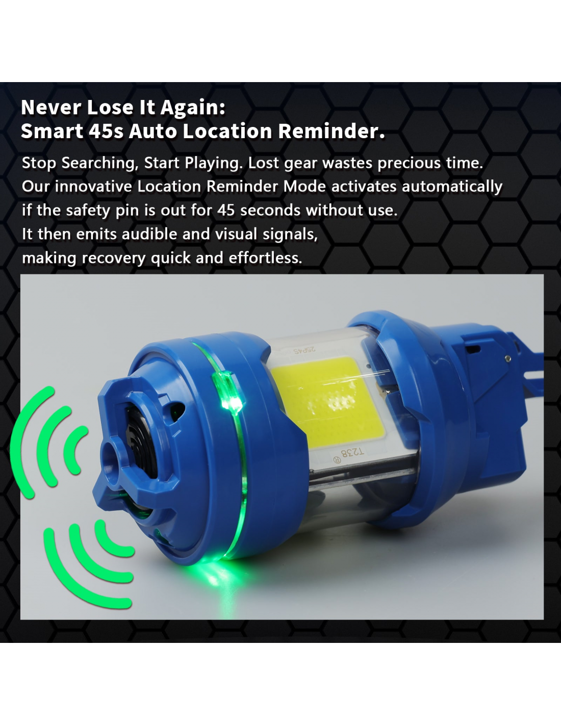 - Position Recovery Mode - A practical Location Reminder Mode activates if the unit is left in the field. After 45 seconds without the safety pin inserted, it will automatically emit intermittent flashes and sounds, allowing players to quickly locate it.
