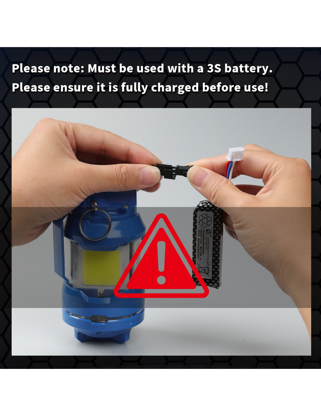 Deploy Instantly. With compact dimensions (63x63x125mm), it fits in any standard pouch. The package includes everything you need: the T238 Flash Bang, a high-performance 11.1V 3S LiPo battery, and a USB charging cable. Charge, play, repeat.