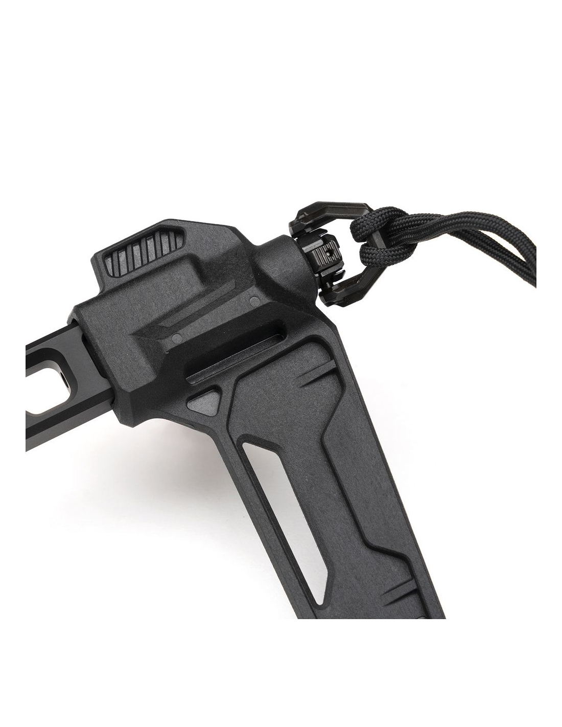 Innovative buttstock with a mechanism that allows both sides to be folded and a large stabilizer foot. Compatible with Picatinny rails and buttstock mounting adapters from Strike Industries SI-SP9-PSA and SI-KP9-PADA. Made of 6061 T6 aluminum, it features a high polymer foot that will allow the weapon to be securely supported. As a result, the user will be able to use the weapon enjoying a reduced recoil sensation.