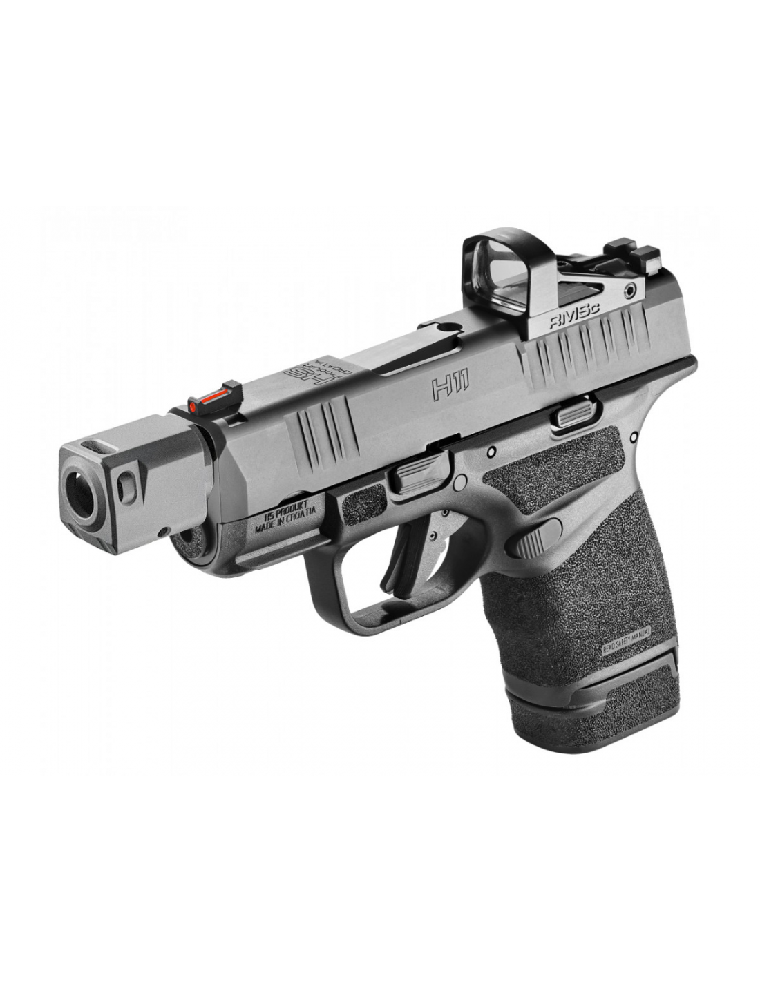 H11 RDR è una pistola micro-compatta con fusto in polimero a percussore. Dotato di canna FILETTATA forgiata a martello e carrello forgiato con finitura protettiva in Melonite. Il design brevettato del caricatore rende H11 RDR micro-compatto da 9 mm con la più alta capacità al mondo. La struttura della presa adattiva appositamente progettata offre un controllo eccezionale durante il fuoco rapido. La pistola è dotata di carrello pretagliato per il montaggio di diversi mirini reflex, ma è anche dotata di mirino in fibra ottica e mirino posteriore a coda di rondine. Slide ha dentellature anteriori e posteriori per una più facile manipolazione. H11 RDR è dotato di due sicure: sicura del grilletto, sicura del percussore e indicatore della camera carica. Il rilascio del caricatore è di tipo reversibile e può essere regolato per tiratori mancini o destrimani. La pistola viene fornita con due tipi di caricatore in acciaio inossidabile: uno è a filo con capacità di 11+1, l'altro è esteso con capacità di 13+1.