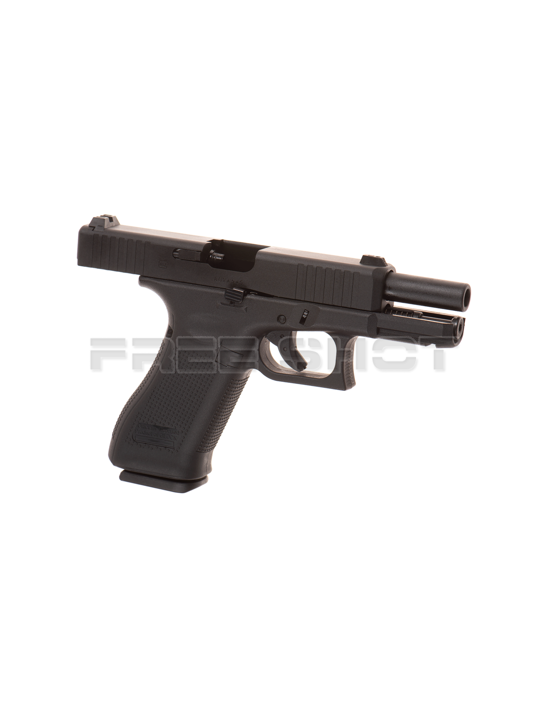 G19X meets Gen5 – the GLOCK 45 is the black version of a crossover pistol that combines the full-sized frame of the G17 with the compact slide of the G19. The front serrations on the slide and enhanced grip make this a typical Gen5 pistol. The G45, a gas-powered airsoft version with a maximum energy of 1 joule, features a Shoot-Up that is adjustable from the outside, a powerful blowback and a heavy metal slide. With its Weaver rail for tactical accessories and ambidextrous slide stop lever this is an ideal backup gun.