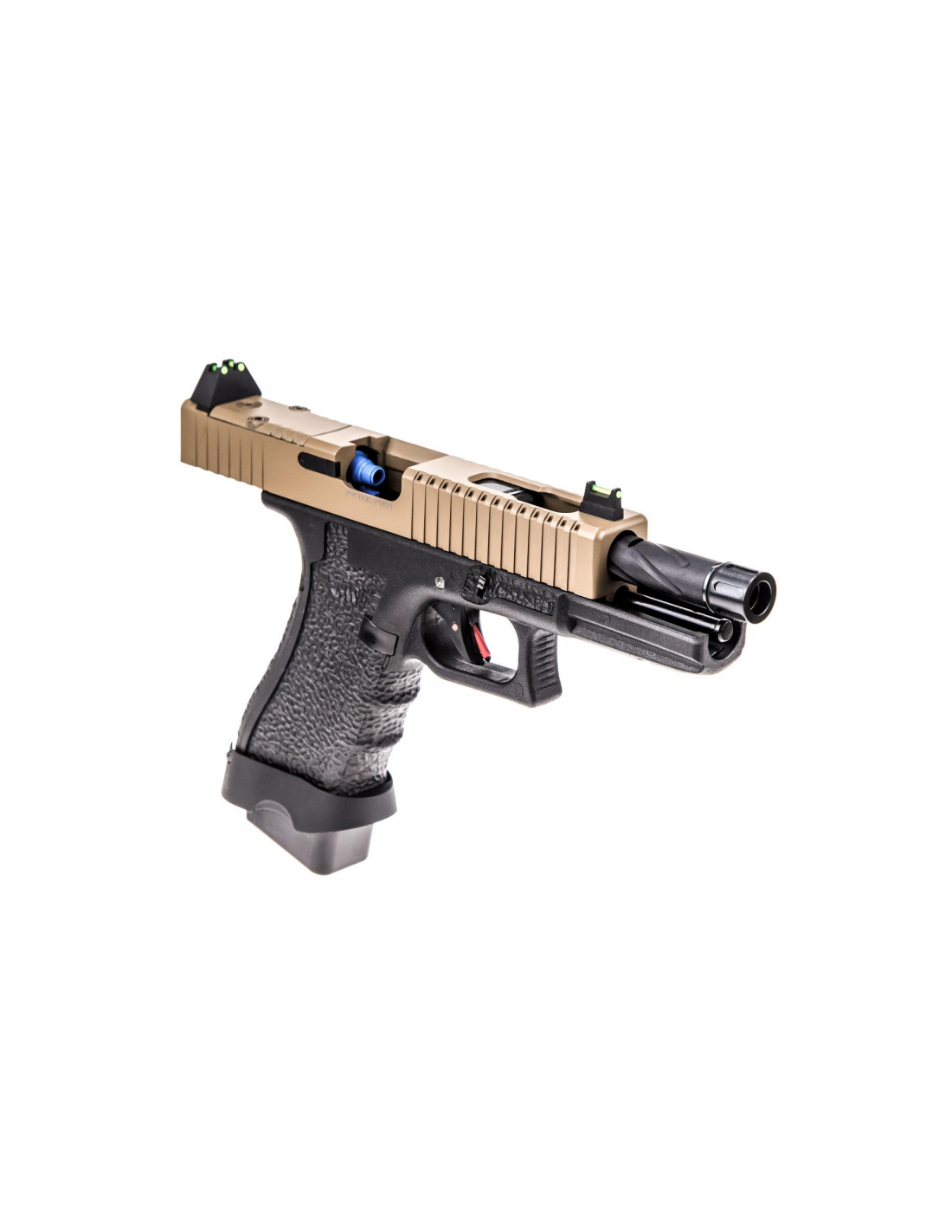 The TACTICAL option features a full-weight Aluminium Alloy Slide that features deep-groove ridge cuts on the forward & rear slide sections to help improve slide grip when racking your first BB. Colour choices are more reserved for the TACTICAL options, with all of the furniture & frame remaining black when choosing different slide colours (excluding GOLD & CHROME that have their furniture in the same colour as the slide).