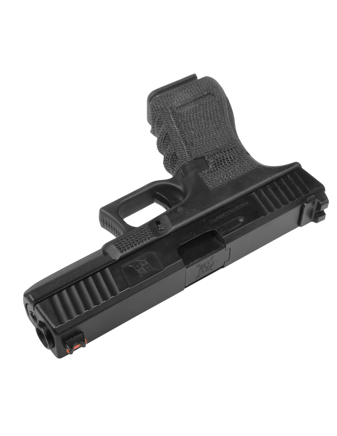 La pistola ha un carrello in metallo lavorato su macchine CNC di precisione. Sul corpo della pistola troviamo un effetto stippling ricavato a mano. La finitura presenta una trama puntinata che serve non solo a distinguersi esteticamente dagli altri, ma soprattutto come pratico irruvidimento dell'impugnatura per un migliore grip.