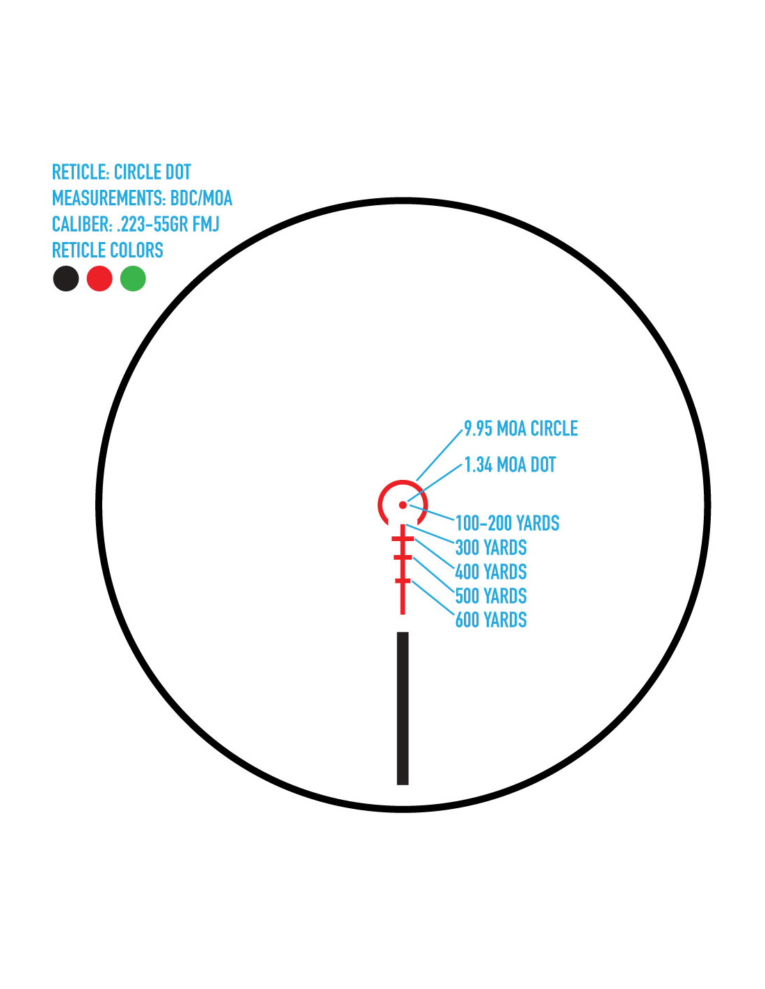 Reticle color Red, green and black